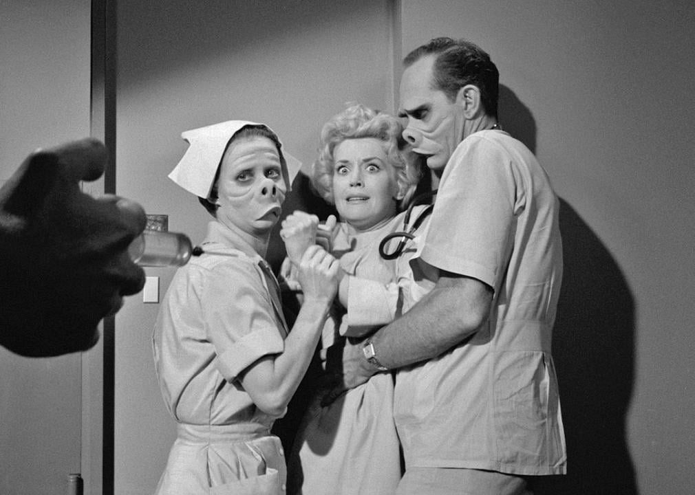 Perhaps the most classic episode of the series focuses on a woman recovering from her 11th facial surgery, undergone in order to make herself look pleasing enough to avoid being sent away to a colony of hideous people. When her bandages come off, revealing what would be, in this world, a beautiful woman, the doctor is disappointed. Then, viewers finally see what everyone else looks like. Serling’s critique of physical beauty and conformism through the story feels even more relevant today.