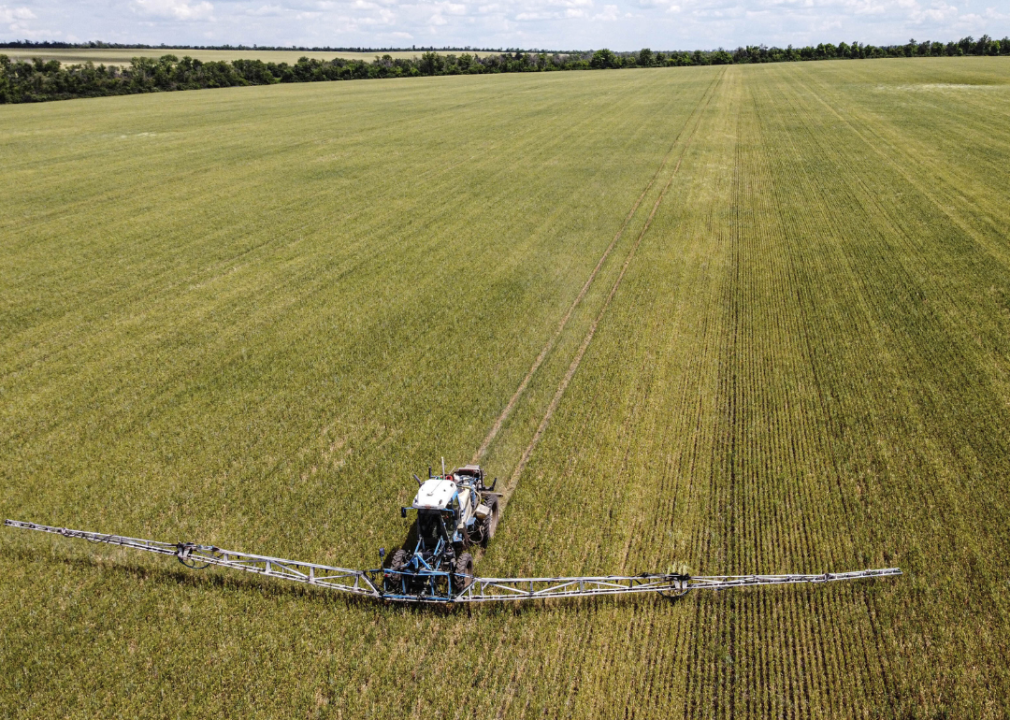 Anti-tank obstacles on a wheat field at a farm in southern Ukraine